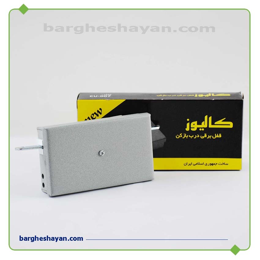 قفل برقی درب بازکن کالیوز مدل CU-007P از تولیدات داخلی میباشد. قطعات داخلی قفل با کمک ۴ پیچ که برروی در پوش قرار داده نگه داشته می شود تا در صورت برخورد ضربه محکم به درب، قطعات داخلی محصول تکان نخورده و خللی در عملکرد قفل ایجاد نشود این قفل به دلیل حالت زنجیری بودن نصب سریع و آسانی دارد و تنها با اتصال آن به ترانس آیفون تصویری دستورات لازم را از نمایشگر درون محل نصب می گیرد